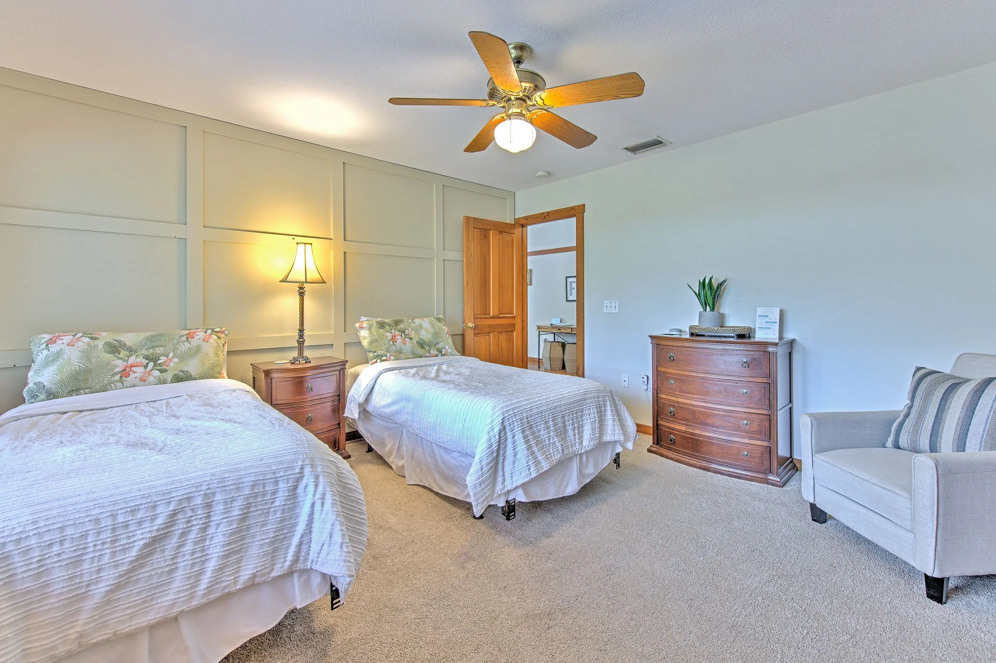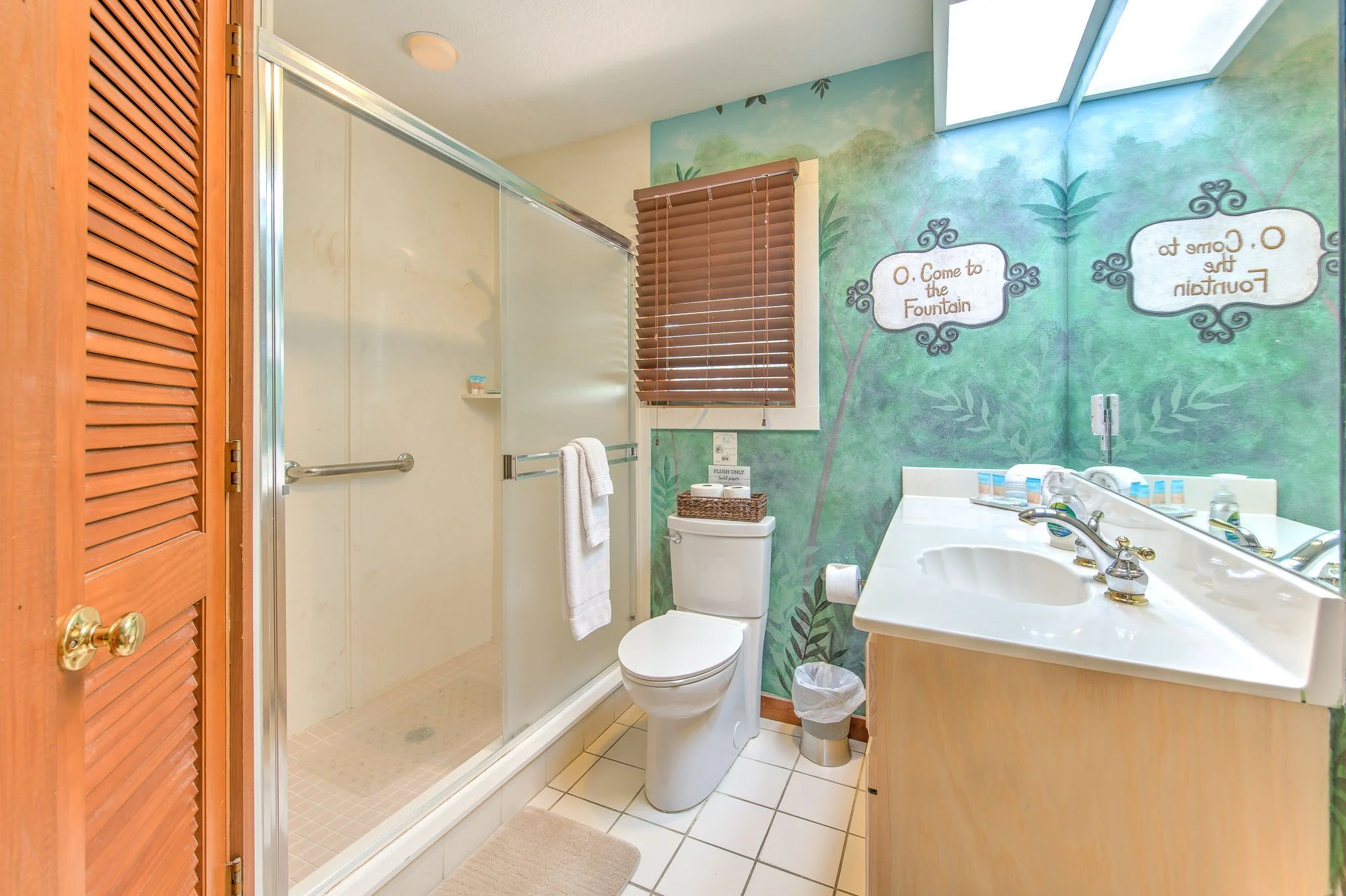 Up to 2 Guests. The first bedroom in Emerald House with all new furniture and a comfy sitting corner. The new Tempur-Pedic mattresses can be configured as a king or two twins. Next to a private bathroom with walk-in shower.