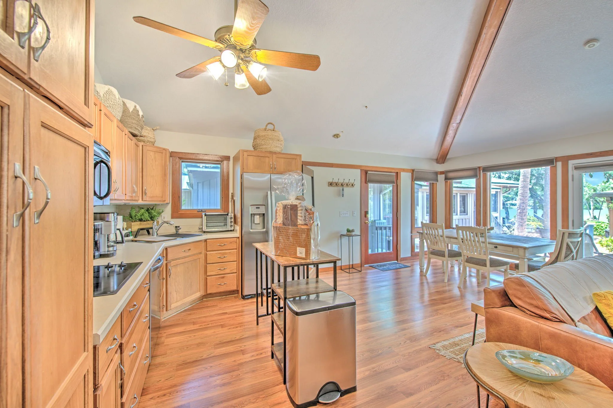 Easily check in and enjoy a private guest suite adjoining our main home. Relax in this fully-appointed guest suite complete with an entertainment center, full kitchen, dining area, and fireplace. The master bedroom features a california king bed with en suite bath with a shower and tub. The guest room has a comfortable california king bed and is adjacent to a second bathroom with a shower. Have an additional guest? There is also a daybed and sofa bed available. Once you’re settled in, take in the pool and river view from your own deck.